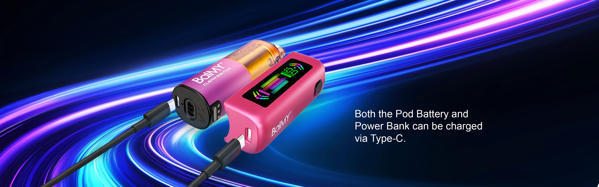 Both the pod battery and power bank support Type-C charging, and the power bank can charge the Pod battery via magnetic charging. |