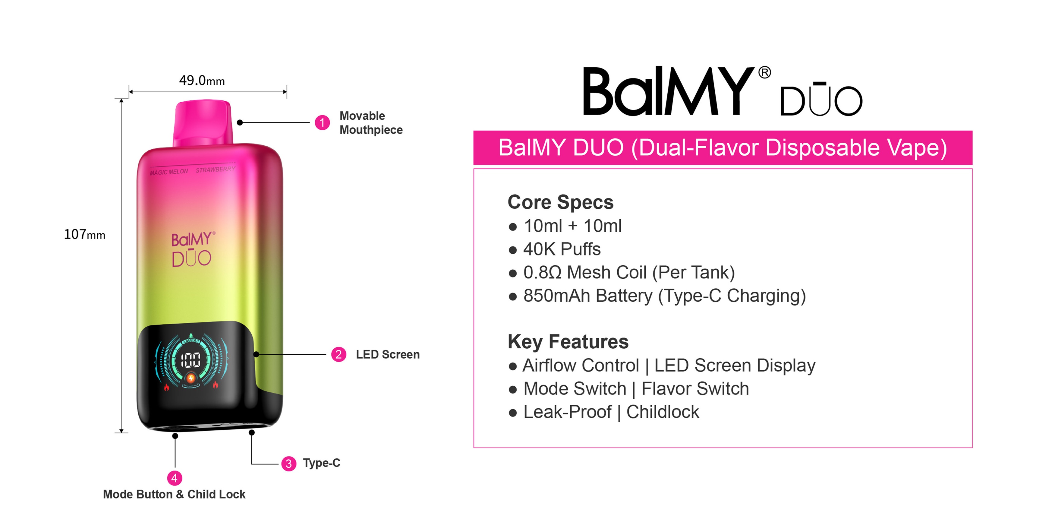 BalMY DUO 40000 Puffs Key Features: