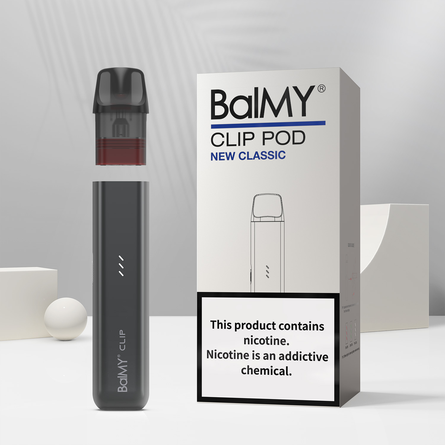 The BalMY CLIP POD KIT consists of two components: the BalMY CLIP Pod Kit and the BalMY CLIP Pods (which are sold separately). If you are wanting to move away from disposable vapes, this new pod kit from BalMY is a great way to get started with the same familiar BalMY flavours in a rechargeable pod kit setup. It's easy to use - simply charge up the device and attach a pre-filled pod. and Refilled Pod.The BalMY CLIP POD Kit includes the two main components: